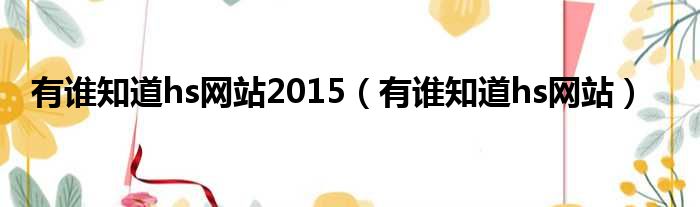 大家好,小霞來為大家解答以上的問題。有誰知道hs網站2015,有誰知道hs網站這個很多人還不知道,現在讓我們一起來看看吧!