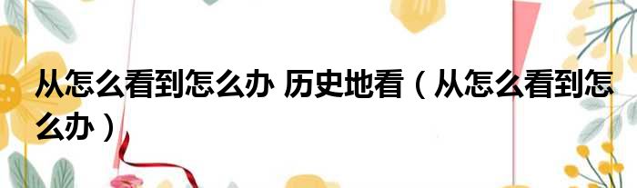 導讀 大家好,小霞來為大家解答以上的問題。從怎么看到怎么辦 歷史地看,從怎么看到怎么辦這個很多人還不知道,現在讓我們一起來看看吧!1、我們