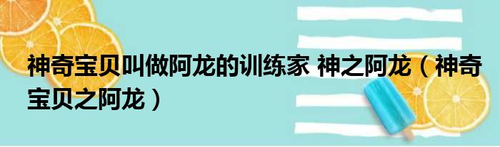 大家好,小霞來為大家解答以上的問題。神奇寶貝叫做阿龍的訓練家 神之阿龍,神奇寶貝之阿龍這個很多人還不知道,現在讓我們一起來看看吧!