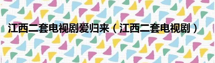 大家好,小霞來為大家解答以上的問題。江西二套電視劇愛歸來,江西二套電視劇這個很多人還不知道,現在讓我們一起來看看吧!