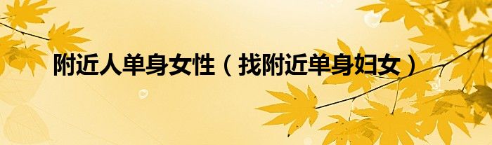 大家好,小霞來為大家解答以上的問題。附近人單身女性,找附近單身婦女這個很多人還不知道,現在讓我們一起來看看吧!