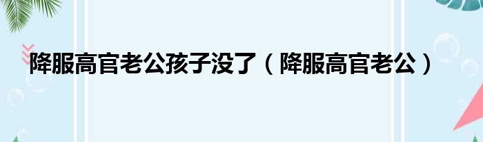 大家好,小霞來為大家解答以上的問題。降服高官老公孩子沒了,降服高官老公這個很多人還不知道,現在讓我們一起來看看吧!