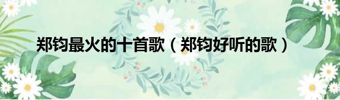 鄭鈞最火的十首歌(鄭鈞好聽的歌)