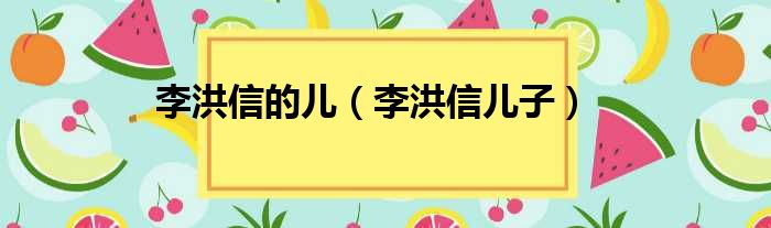 大家好,小霞來為大家解答以上的問題。李洪信的兒,李洪信兒子這個很多人還不知道,現在讓我們一起來看看吧!