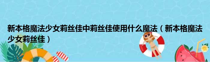 大家好,小霞來為大家解答以上的問題。新本格魔法少女莉絲佳中莉絲佳使用什么魔法,新本格魔法少女莉絲佳這個很多人還不知道,現在讓我們一起來看看吧!