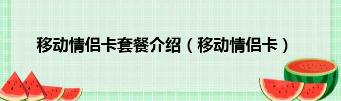 移動情侶卡套餐介紹(移動情侶卡)