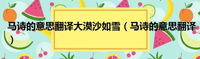 馬詩的意思翻譯大漠沙如雪(馬詩的意思翻譯)