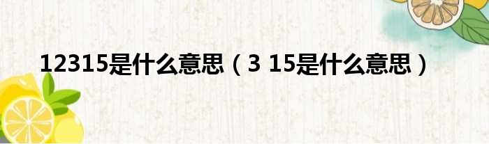 大家好,小霞來為大家解答以上的問題。12315是什么意思,3 15是什么意思這個很多人還不知道,現在讓我們一起來看看吧!