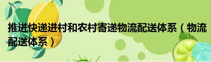 推進快遞進村和農村寄遞物流配送體系(物流配送體系)
