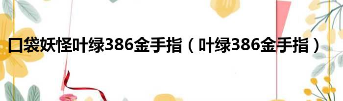 大家好,小霞來為大家解答以上的問題。口袋妖怪葉綠386金手指,葉綠386金手指這個很多人還不知道,現在讓我們一起來看看吧!