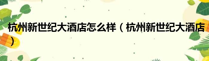 杭州新世紀大酒店怎么樣(杭州新世紀大酒店)