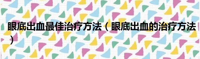 眼底出血最佳治療方法(眼底出血的治療方法)