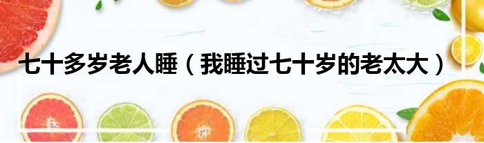 大家好,小霞來為大家解答以上的問題。七十多歲老人睡,我睡過七十歲的老太大這個很多人還不知道,現在讓我們一起來看看吧!