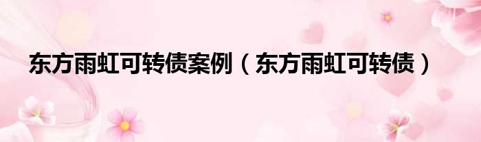 東方雨虹可轉債案例(東方雨虹可轉債)