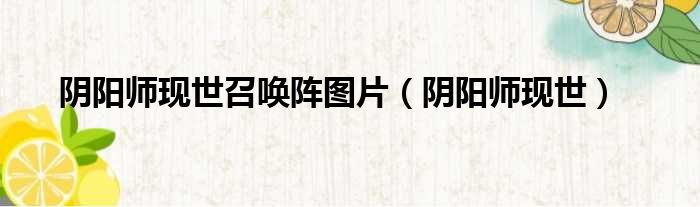 陰陽師現世召喚陣圖片(陰陽師現世)