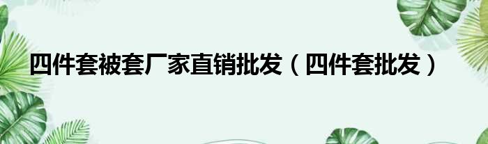 大家好,小霞來為大家解答以上的問題。四件套被套廠家直銷批發,四件套批發這個很多人還不知道,現在讓我們一起來看看吧!