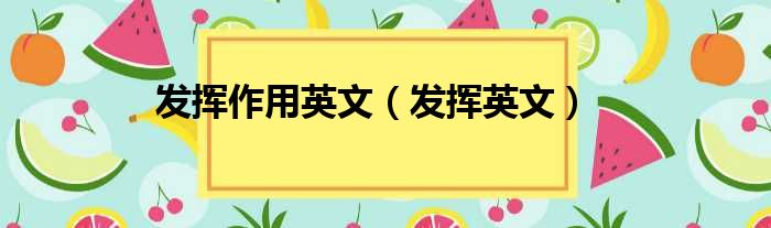 大家好,小霞來為大家解答以上的問題。發揮作用英文,發揮英文這個很多人還不知道,現在讓我們一起來看看吧!