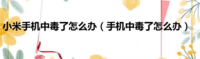 小米手機中毒了怎么辦(手機中毒了怎么辦)