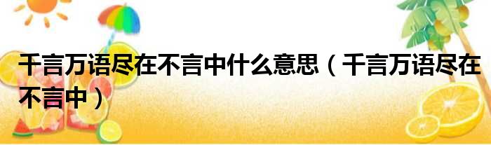 千言萬語盡在不言中什么意思(千言萬語盡在不言中)
