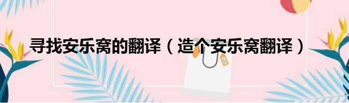 尋找安樂窩的翻譯(造個安樂窩翻譯)