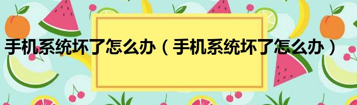 手機系統壞了怎么辦(手機系統壞了怎么辦)