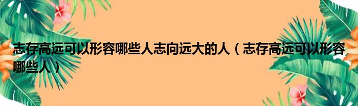 志存高遠可以形容哪些人志向遠大的人(志存高遠可以形容哪些人)
