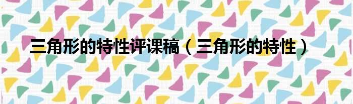 三角形的特性評課稿(三角形的特性)