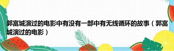 大家好,小霞來為大家解答以上的問題。郭富城演過的電影中有沒有一部中有無線循環的故事,郭富城演過的電影這個很多人還不知道,現在讓我們一起來看看吧!