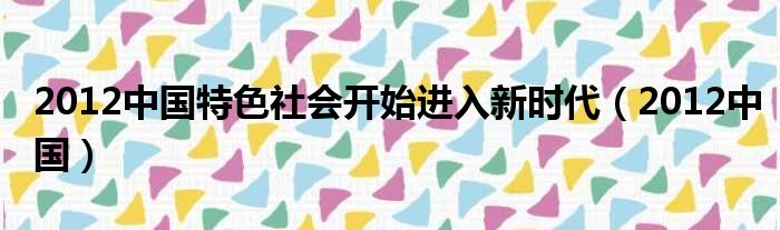 大家好,小霞來為大家解答以上的問題。2012中國特色社會開始進入新時代,2012中國這個很多人還不知道,現在讓我們一起來看看吧!