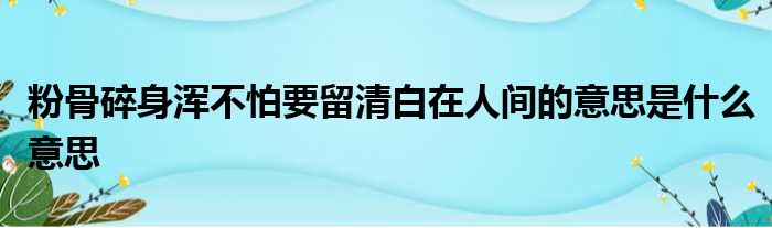 粉骨碎身渾不怕要留清白在人間的意思是什么意思