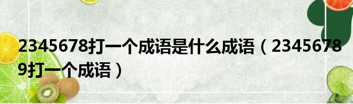 大家好,小霞來為大家解答以上的問題。2345678打一個成語是什么成語,23456789打一個成語這個很多人還不知道,現在讓我們一起來看看吧!