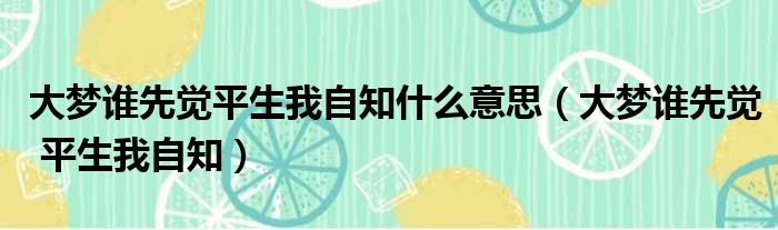 大夢誰先覺平生我自知什么意思(大夢誰先覺 平生我自知)