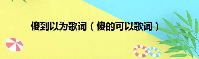 大家好,小霞來為大家解答以上的問題。傻到以為歌詞,傻的可以歌詞這個很多人還不知道,現在讓我們一起來看看吧!