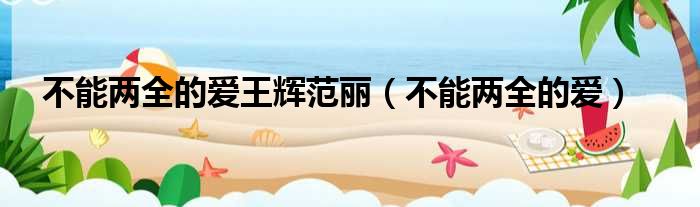 大家好,小霞來為大家解答以上的問題。不能兩全的愛王輝范麗,不能兩全的愛這個很多人還不知道,現在讓我們一起來看看吧!