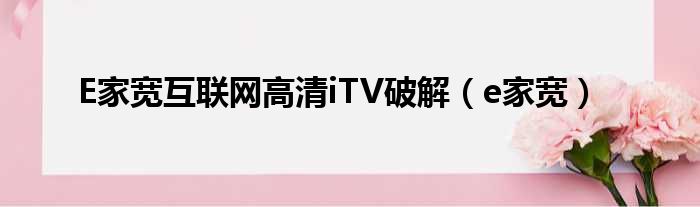 大家好,小霞來為大家解答以上的問題。E家寬互聯網高清iTV破解,e家寬這個很多人還不知道,現在讓我們一起來看看吧!