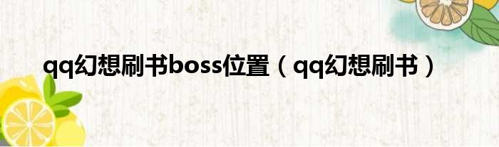 qq幻想刷書boss位置(qq幻想刷書)
