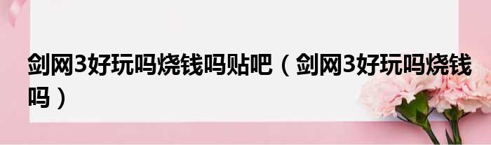 劍網3好玩嗎燒錢嗎貼吧(劍網3好玩嗎燒錢嗎)