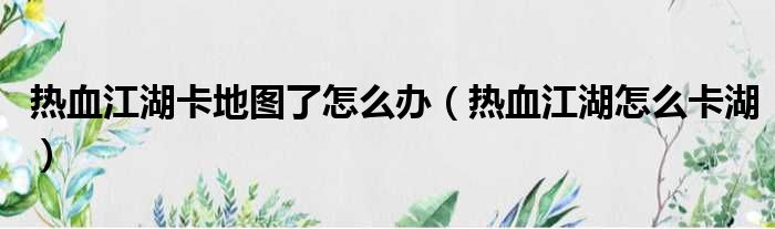 熱血江湖卡地圖了怎么辦(熱血江湖怎么卡湖)