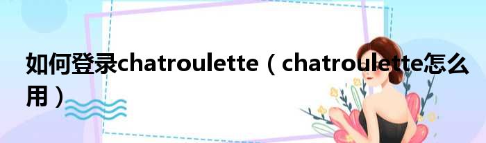 大家好,小霞來為大家解答以上的問題。如何登錄chatroulette,chatroulette怎么用這個很多人還不知道,現在讓我們一起來看看吧!
