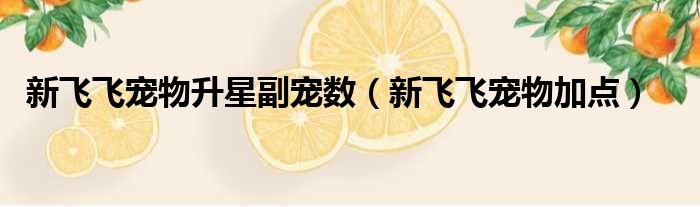新飛飛寵物升星副寵數(新飛飛寵物加點)