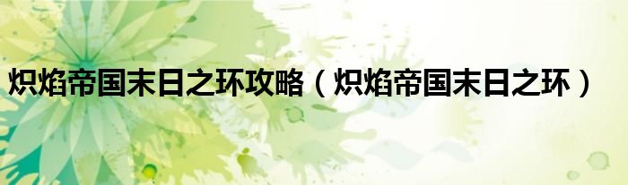熾焰帝國末日之環攻略(熾焰帝國末日之環)