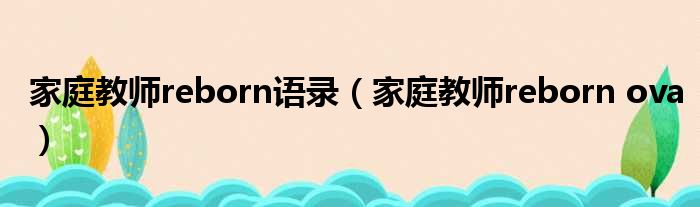 大家好,小霞來為大家解答以上的問題。家庭教師reborn語錄,家庭教師reborn ova這個很多人還不知道,現在讓我們一起來看看吧!
