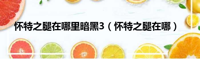 懷特之腿在哪里暗黑3(懷特之腿在哪)