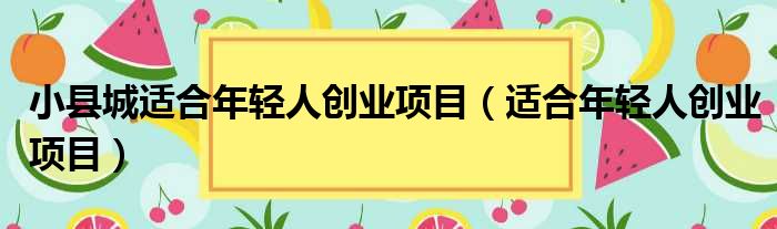 小縣城適合年輕人創業項目(適合年輕人創業項目)