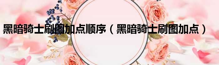 黑暗騎士刷圖加點順序(黑暗騎士刷圖加點)