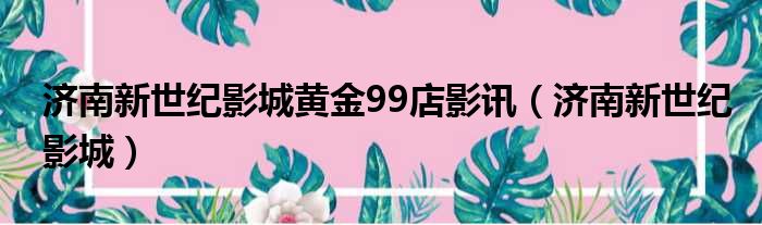 濟南新世紀影城黃金99店影訊(濟南新世紀影城)