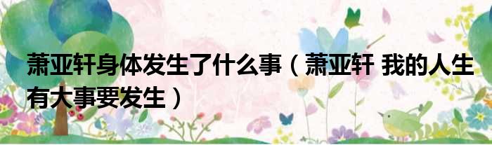 大家好,小霞來為大家解答以上的問題。蕭亞軒身體發生了什么事,蕭亞軒 我的人生有大事要發生這個很多人還不知道,現在讓我們一起來看看吧!