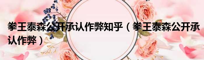 拳王泰森公開承認作弊知乎(拳王泰森公開承認作弊)