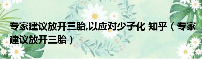 專家建議放開三胎,以應對少子化 知乎(專家建議放開三胎)