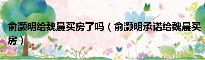 俞灝明給魏晨買房了嗎(俞灝明承諾給魏晨買房)